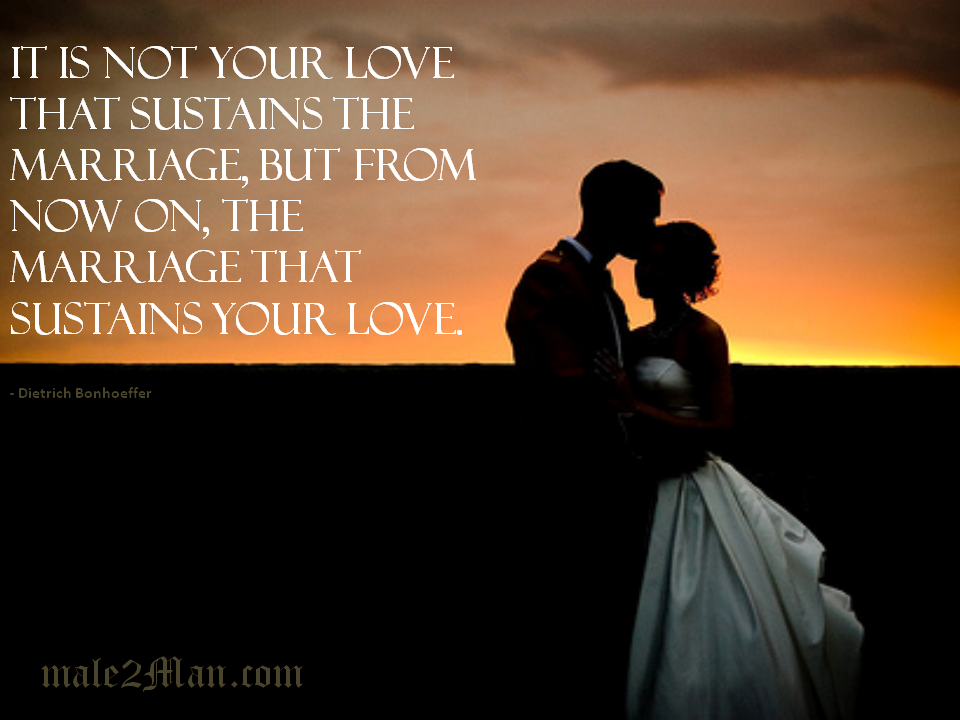 Tim Keller, John Piper, and D.A. Carson speak to this topic with a measure of wisdom and grace that I cannot. We at male2Man wanted to be sure to share this video with you: http://thegospelcoalition.org/blogs/tgc/2011/06/06/piper-carson-and-keller-on-sustaining-the-covenant-of-marital-love/